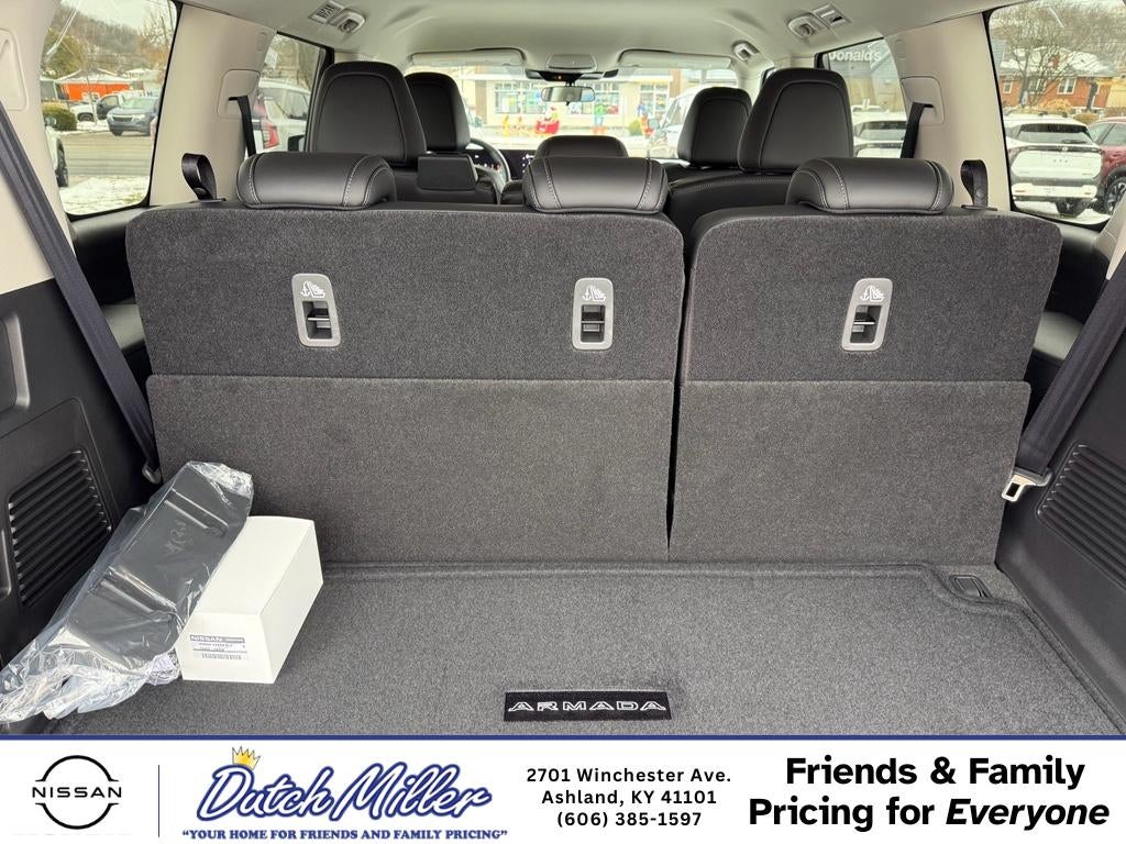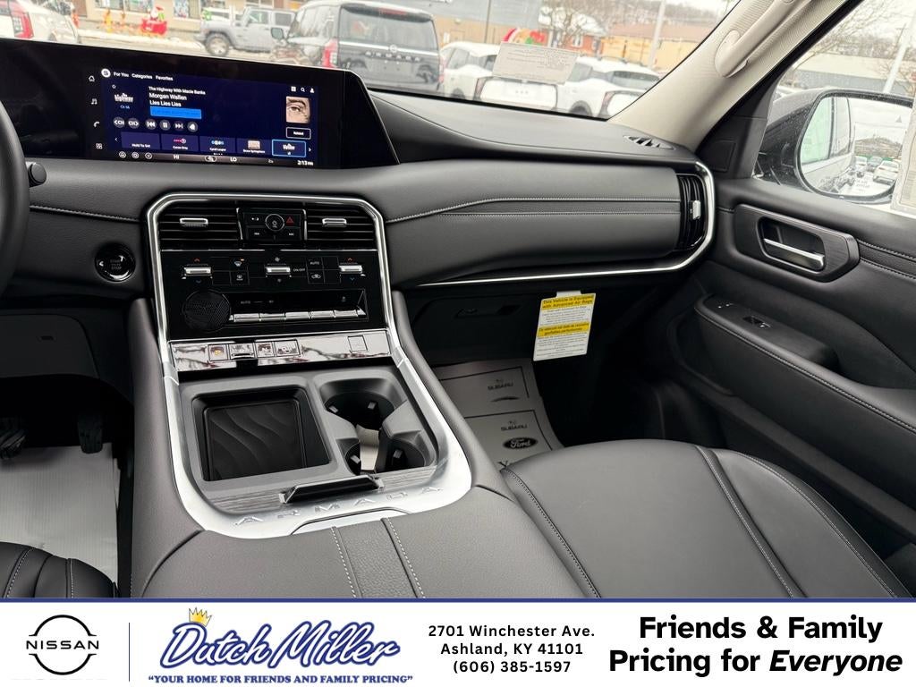 2026 Nissan Armada SV 4WD — powerful performance, premium comfort, and advanced safety at the best price in Ashland, KY. This striking full-size SUV features a robust V6 3.5L gasoline engine paired with confident four-wheel drive, delivering smooth acceleration, towing capability, and composed handling for work, family, and weekend adventures. Inside, premium leather seats provide elevated comfort for every passenger, while spacious seating and intelligent cabin layout make long drives relaxed and enjoyable. Stay connected with hands-free Bluetooth® for effortless calls and media control, and maneuver with confidence using the back-up camera and rear parking sensors that help you park precisely in tight situations. Safety is a priority with forward collision warning to help reduce the risk of front-end impacts and enhance driver awareness. The 2026 Nissan Armada SV blends advanced driver assistance features with a durable, capable powertrain, making it an ideal choice for drivers who want capability without sacrificing comfort. Located in Ashland, KY, this Nissan Armada SV is competitively priced and offers exceptional value — the best price available locally. Whether you need a family hauler, a rugged weekend vehicle, or a reliable daily driver, this Nissan Armada checks all the boxes. Schedule a test drive today to experience the power, refinement, and advanced technologies of this 2026 Nissan Armada SV right here in Ashland.