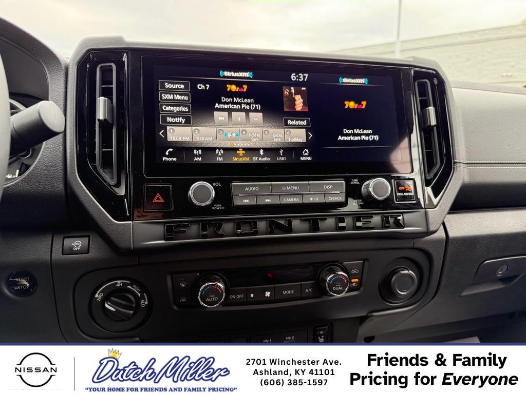 This 2026 Nissan Frontier features a hands-free Bluetooth® phone system. See what's behind you with the back up camera on this 2026 Nissan Frontier . This Nissan Frontier offers Android Auto for seamless smartphone integration. This model keeps you comfortable with Auto Climate. Start this unit from inside with remote start. Keep your hands warm all winter with a heated steering wheel in this model . The vehicle's Lane Departure Warning helps keep you in your lane. The state of the art park assist system will guide you easily into any spot. This unit offers Apple CarPlay for seamless connectivity. This unit has a V6, 3.8L high output engine. When you encounter slick or muddy roads, you can engage the four wheel drive on the vehicle and drive with confidence. This small pickup is painted with a sleek and sophisticated black color. Maintaining a stable interior temperature in this model is easy with the climate control system.