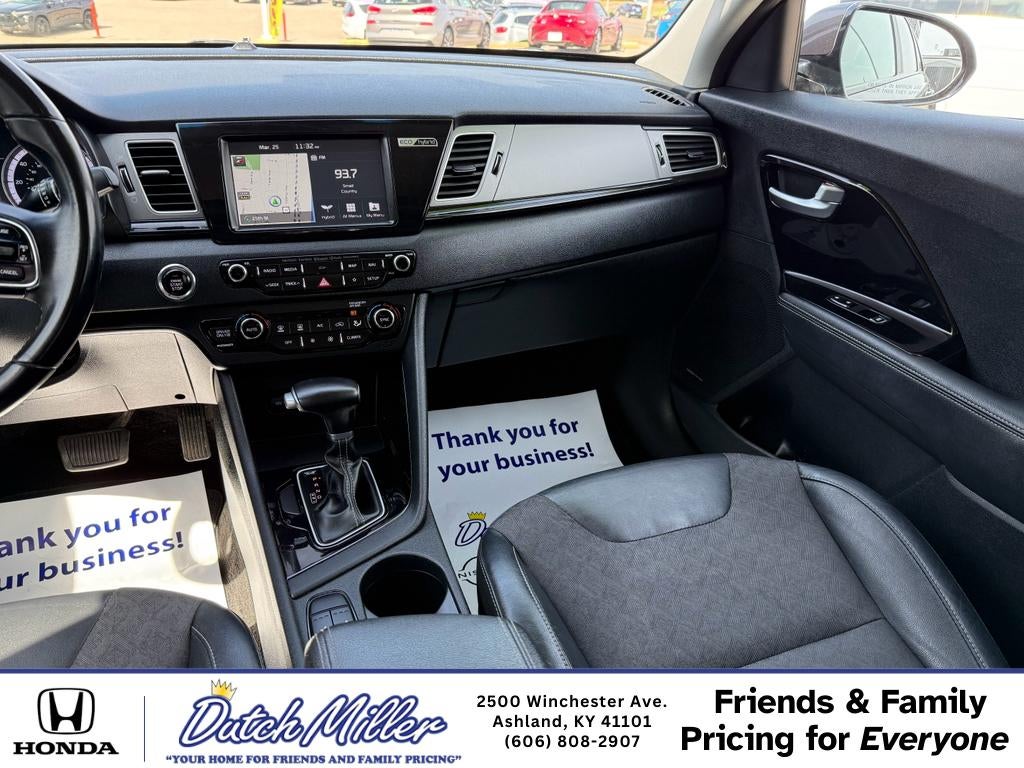 Experience exceptional value with this 2019 Kia Niro S Touring, a fuel-efficient Full Hybrid Electric (FHEV) featuring a responsive 4-cylinder 1.6L engine and smooth FWD handling. Located in Ashland, KY, this gently pre-owned crossover delivers practical technology and comfort for daily driving or longer trips. This Kia Niro S Touring combines efficiency with convenience: Automatic Climate Control keeps the cabin comfortable, while navigation and XM Radio enhance your listening and route options. Apple CarPlay integrates your smartphone for hands-free calling, messaging, and music streaming. The CARFAX 1-Owner report provides added peace of mind about its ownership history and maintenance care. Inside, the thoughtfully designed interior offers supportive seating and intuitive controls, while the compact hybrid powertrain provides excellent fuel economy without sacrificing performance. Standard safety and driver-assist features contribute to confident handling in varied road conditions. The automatic transmission delivers smooth shifts, making this Kia Niro ideal for city commutes and highway cruising alike. Priced to move, this 2019 Kia Niro S Touring represents the best price in the area for a well-equipped hybrid with a documented single-owner history. Stop by Ashland, KY to test drive and experience the combination of technology, efficiency, and value that this Kia Niro offers. Competitive pricing means you get more features for less—schedule your appointment today.