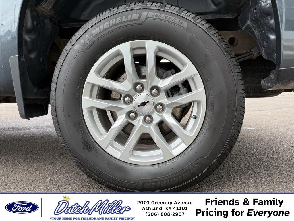 Convenience Package: Leather Wrapped Steering Wheel; Manual Tilt/telescoping Steering Column; Heated Steering Wheel; 10-Way Power Driver Seat with Lumbar; Dual-Zone Automatic Climate Control; Heated Driver and Front Outboard Passenger Seats. Preferred Equipment Group 1SP: LED Cargo Area Lighting; Rear Vision Camera; Rear 60/40 Folding Bench Seat (folds Up); Cloth Seat Trim; Bluetooth® For Phone; Remote Vehicle Starter System; 2 USB Ports (first Row); Electric Rear-Window Defogger; Theft Deterrent System (unauthorized Entry); 18" X 8.5" Bright Silver Painted Aluminum Wheels; Compass; 265/65R18SL AS BW Tires; 4.2" Diagonal Color Display Driver Info Center; Electrical Lock Control Steering Column; Trailering Package; Standard Tailgate; Front LED Fog Lamps; 40/20/40 Front Split-Bench Seat; Steering Wheel Audio Controls; Color-Keyed Carpeting Floor Covering; All-Star Edition; OnStar and Chevrolet Connected Services Capable; Power Front Windows with Passenger Express Down; Front Rubberized Vinyl Floor Mats; Rear Rubberized-Vinyl Floor Mats; Deep-Tinted Glass; 6-Speaker Audio System; High Gloss Black Mirror Caps; Chevrolet Infotainment 3 System Radio; Electronic Cruise Control; Power Rear Windows with Express Down; SiriusXM Radio; Single-Speed Transfer Case; Power Front Windows with Driver Express Up/down; Body Color Grille; EZ Lift Power Lock and Release Tailgate; Rear Dual USB Charging-Only Ports; Front Frame-Mounted Black Recovery Hooks; Keyless Open and Start; 12-Volt Rear Auxiliary Power Outlet; Auto-Locking Rear Differential; Power Door Locks. Integrated Trailer Brake Controller. **Equipment listed is based on original vehicle build and subject to change. Please confirm the accuracy of the included equipment by calling the dealer prior to purchase.**