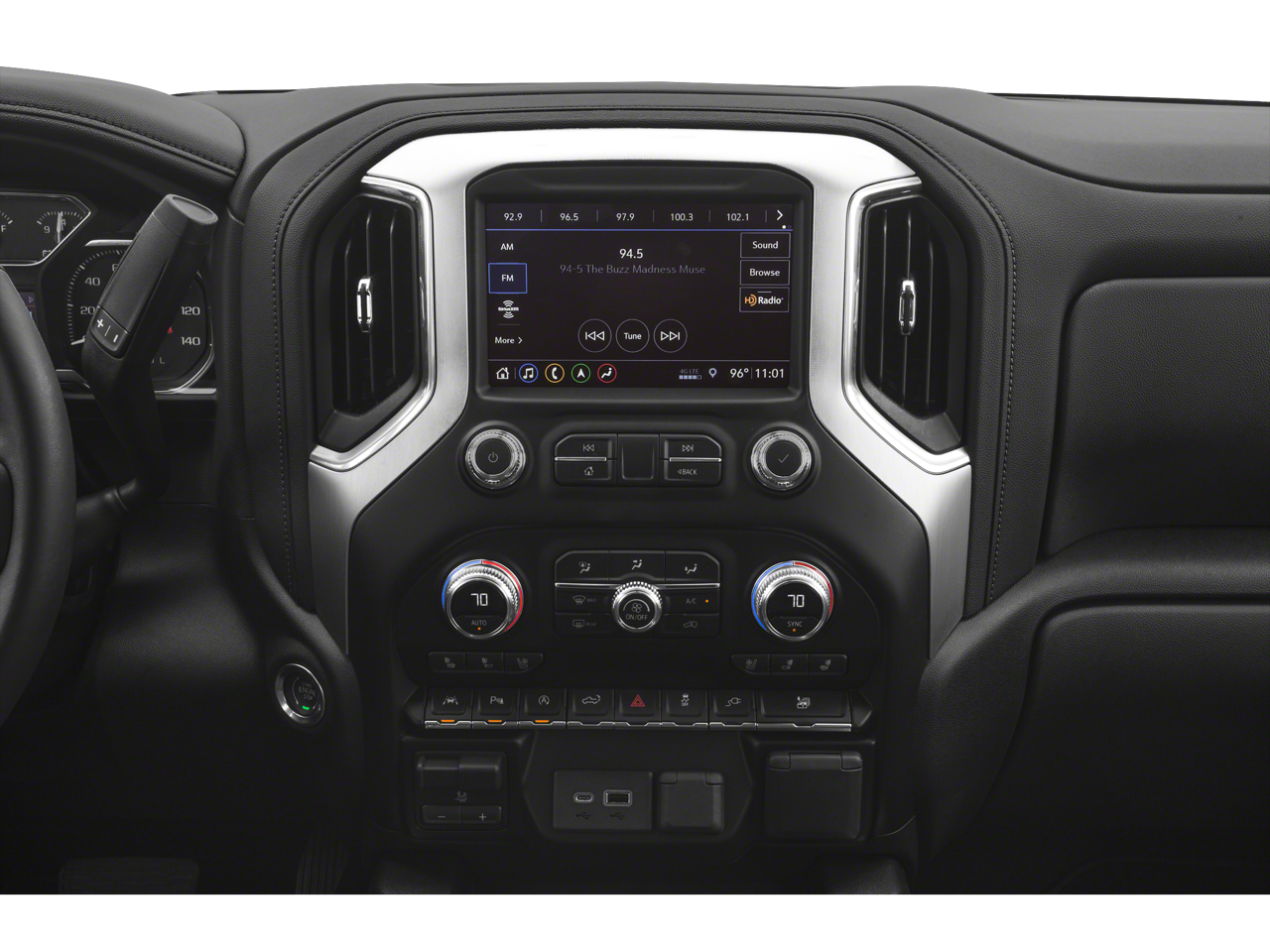 - Audio system, Premium GMC Infotainment System with 8" diagonal color touch-screen, includes multi-touch display, AM/FM stereo Bluetooth® streaming audio for music and most phones; featuring wireless Android Auto and Apple CarPlay capability for compatible phones, advanced voice recognition, in-vehicle apps, personalized profiles for infotainment and vehicle settings (Note: (PZ8) Hitch Guidance with hitch view is included with trim. Includes SiriusXM with 360L.)