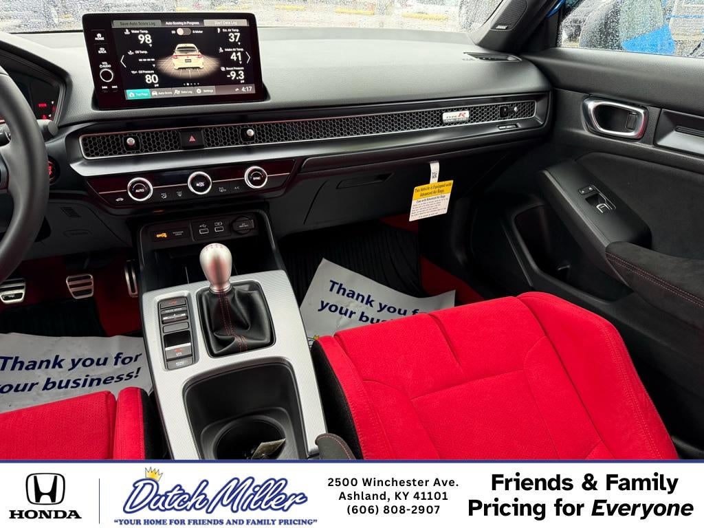 2024 Honda Civic Type R Touring — Priced to Move in Ashland, KY Looking for performance and refinement? This 2024 Honda Civic Type R Touring with just 4,277 miles pairs a turbocharged 4-cylinder 2.0L gasoline engine with aggressive styling and premium touring amenities. Located in Ashland, KY, this Type R Touring delivers low-mileage value and the best price in the area for drivers who want track-capable performance without the new-car premium. Key features include Automatic Climate Control for comfortable cabin temperatures, Navigation for confident route planning, and a Back-Up Camera to simplify parking and tight maneuvers. Safety-focused tech like Forward Collision Warning and Adaptive Cruise Control help keep you aware and relaxed on highway drives. The Touring trim adds upscale touches and convenience that enhance daily driving and spirited weekend runs. This Honda Civic Type R provides Honda's renowned reliability with modern connectivity and driver-assist systems, making it an excellent choice for enthusiasts who also need everyday usability. With low mileage and the best price in Ashland, KY, don't miss this opportunity to own a well-equipped, performance-oriented hatchback that stands out for capability and value. Contact us to schedule a test drive and experience the Type R Touring for yourself.