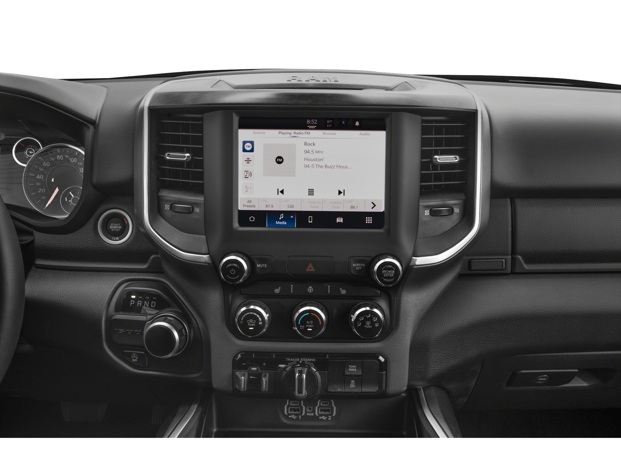 Quick Order Package 27Z Big Horn: Big Horn Badge. Big Horn Level 1 Equipment Group: Google Android Auto; SiriusXM Radio Service; Bluetooth® Handsfree Phone and Audio; USB Host Flip; Rear Window Defroster; Rear View Auto Dim Mirror; For Details. Visit DriveUconnect.com; For More Info. Call 800-643-2112; Rear Power Sliding Window; Rear Dome with On/off Switch Lamp; Front Fog Lamps; Connectivity - US/Canada; Glove Box Lamp; 4G LTE Wi-Fi Hot Spot; Exterior Mirrors with Heating Element; Auto Dim Exterior Driver Mirror; Global Telematics Box Module; Heated Front Seats; Heated Steering Wheel; Class IV Receiver Hitch; Black Premium Power Mirrors; Apple CarPlay; Big Horn Instrument Panel Badge; SiriusXM Satellite Radio; Exterior Mirrors with Supplemental Signals; Exterior Mirrors Courtesy Lamps; Passenger Sun Visor with Illuminated Mirror; Electric Shift on Demand Transfer Case; Power-Folding Mirrors; 2nd Row in Floor Storage Bins; Convex Wide-Angle Exterior Mirror Insert. Sport Appearance Package: 275/55R20 OWL All Season Tires; Deluxe Cloth Bucket Seats; Exterior Mirrors with Supplemental Signals; Body Color Premium Power Mirrors; Body Color Door Handles; Exterior Mirrors Courtesy Lamps; RAM Grille Badge - Chrome; Exterior Mirrors with Heating Element; Auto Dim Exterior Driver Mirror; Body Color Exterior Mirrors; Grille Surround 1 Body Color Texture 2 Black; Black Interior Accents; Power-Folding Mirrors; Body Color Front Bumper; Convex Wide-Angle Exterior Mirror Insert; Body Color Rear Bumper with Step Pads. Quick Order Package 23Z Big Horn: Big Horn Badge. 20" X 9" Aluminum Chrome Clad Wheels. Uconnect 5 Navigation Radio with 8.4" Display. Deluxe Cloth Bucket Seats. Trailer Brake Control. Remote Start System. Patriot Blue Pearlcoat. Patriot Blue Pearlcoat. MOPAR Front and Rear Rubber Floor Mats. **Equipment listed is based on original vehicle build and subject to change. Please confirm the accuracy of the included equipment by calling the dealer prior to purchase.**
