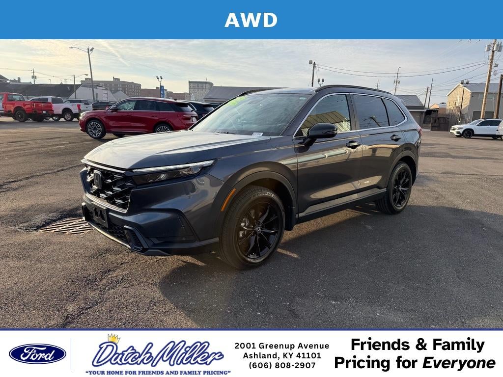 Discover exceptional value with this 2025 Honda CR-V Hybrid Sport-L, now available in Ashland, KY. This low-mileage gem has just 9,396 miles and features Honda's efficient 4‑cyl, 2.0L Full Hybrid Electric (FHEV) powertrain—delivering impressive fuel economy without sacrificing performance. Priced to sell, this Honda CR-V Hybrid Sport-L offers the best price in the area for a like-new, feature-packed SUV. Comfort and convenience shine with Remote Start and Hands-Free Bluetooth® for seamless connectivity on every drive. Safety is front and center: enjoy Forward Collision Warning and Adaptive Cruise Control for added confidence on highways and busy streets. This vehicle is a CARFAX 1-Owner model, reflecting careful ownership and solid maintenance history. Inside, you'll find a thoughtfully designed cabin with premium materials, advanced infotainment, and spacious cargo capacity—perfect for families, commuters, or weekend adventures. The hybrid system provides smooth acceleration and quiet operation while maximizing efficiency for daily driving and longer trips. Located in Ashland, KY, this 2025 Honda CR-V Hybrid Sport-L combines low mileage, advanced technology, and top safety features at the best local price. Contact us today to schedule a test drive or request the CARFAX report—don't miss this opportunity to own a high-value hybrid SUV.