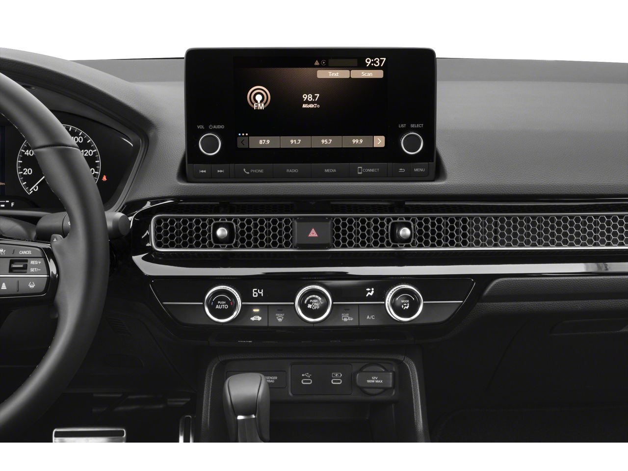 - Radio: 180-Watt Audio System -inc: 8 speakers, 7" color touchscreen, Bluetooth® HandsFreeLink and streaming audio, HondaLink, Speed-Sensitive Volume Compensation (SVC), Radio Data System (RDS), Apple CarPlay and Android Auto compatibility and USB-C 3.0A smartphone/audio interface port in front console